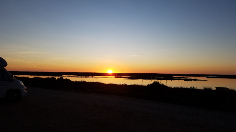 We blijven hier niet staan maar gaan weer naar de kust. We vinden een plekje vlakbij de plaats Luz. We staan daar aan een lagune waar oesters gekweekt worden. Het is als ze aankomen laag water en de mensen zijn volop bezig met oesters rapen. Het is geen grote plaats om te staan maar aan het einde van de dag staan we er toch met 4 campers. De lokale bevolking vindt dit minder prettig want ze gebruiken deze plek eigenlijk om met hun auto's te keren en dat gaat nu niet meer zo makkelijk. Vandaag is het weer een prachtige dag geweest.