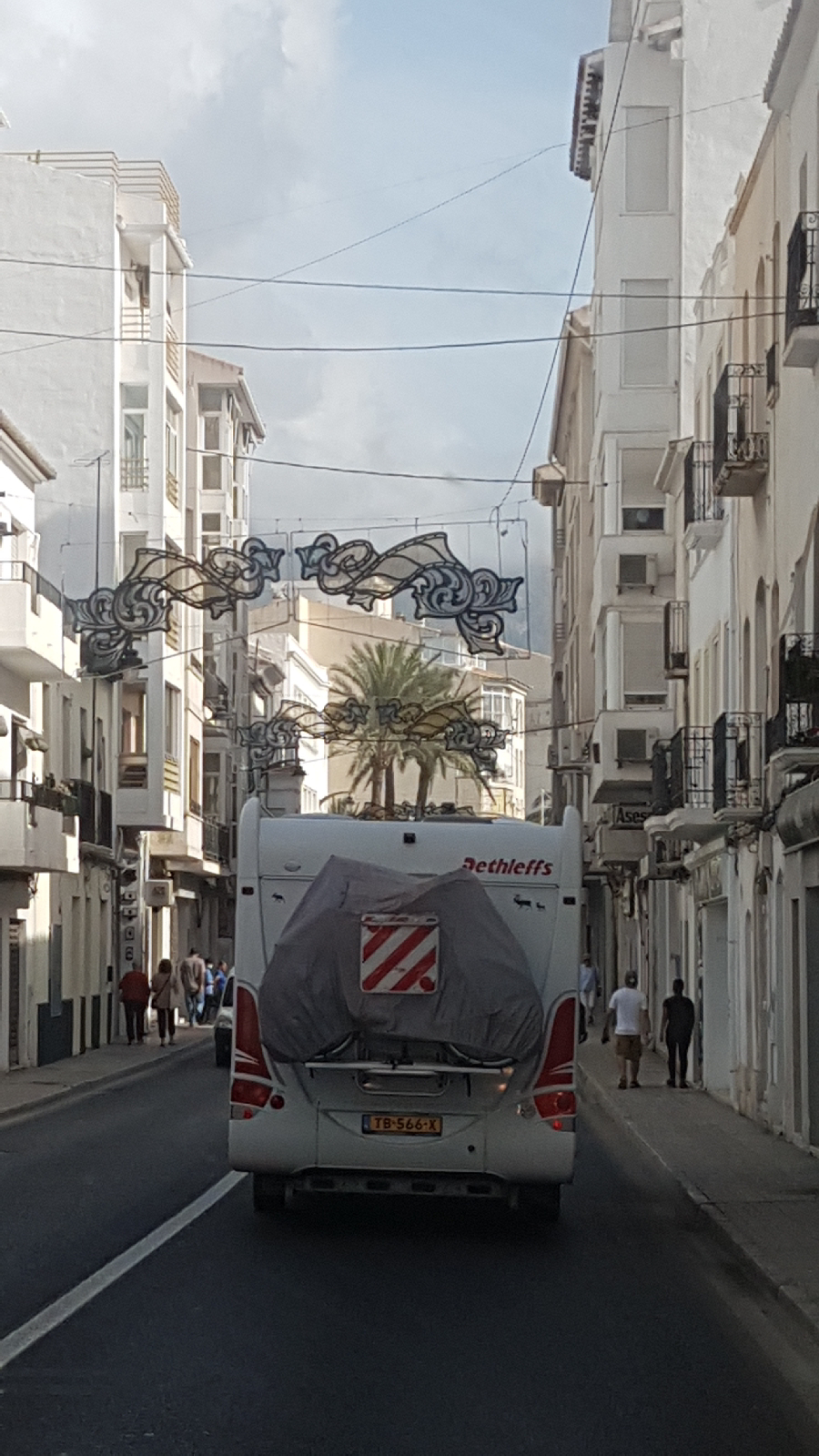 Na te hebben genoten van de heerlijke douche hier en het legen van het toilet spuiten we nog even het zout van de ramen en dan vertrekken we weer. We rijden vandaag naar Castellon in de hoop dat daar plek is op een zaterdag want normaal is het daar erg druk. Ik heb deze reis wat met coördinaten want ook nu komen we weer verkeerd uit, moest het oost ipv west zijn, gelukkig maar 5 km uit de buurt. Als we op de camperplaats komen is er nog plek genoeg. We zetten de campers zo neer dat we er nog tussen kunnen zitten. Eigenlijk mag je hier geen camping gedrag vertonen maar daar trekken er ons niets van aan. In mijn herinnering moet er hier op zaterdag markt zijn en dus lopen Monique en ik daar eerst even naar toe. Maar er is dus geen markt. We zien wel een zaak met heerlijk ijs en later nog een eettentje met doner kebab die tot 24.00 uur open is dus dat gaat ons avondeten worden. We halen nog even boodschappen bij de Mercadona en weer terug bij de campers gaan we eerst brood eten en daarna loop ik met M&M naar de camperplaats bij het vliegveld om deze aan hun te laten zien maar we blijven staan waar we staan. Weer terug rusten we nog even uit en dan lopen we naar het dorp om een ijsje te gaan eten wat heerlijk smaakt. Monique en ik lopen nog even een china store in en Monique scoort nog wat speelgoed. Bij de volgende china store lopen de mannen alvast door en gaan wij nog even naar binnen maar zien niets van onze gading. Als we weer bij de campers zijn drinken we nog wat terwijl de lucht steeds donkerder wordt en het gaat bliksemen. Tegen 20.00 uur lopen we weer naar het dorp en nemen voor de zekerheid maar een paraplu mee. We beginnen buiten op het terras maar als het steeds harder gaat druppelen besluiten we om toch maar binnen te eten. We zoeken een tafeltje uit maar dat bleek een verkeerde keus want we zitten vlakbij de grill en die is goed heet. De mannen zijn zo aardig om een fan neer te zetten en dat scheelt iets. Het eten smaakt prima en is weer zoveel dat we het niet op krijgen. De bui was trouwens al snel weer over en we lopen weer droog terug. Als we langs de Mercadona lopen gaan we nog even naar binnen om rum te kopen. Bij de campers zitten we nog even buiten maar Monique en ik trekken wel wat aan want er zitten hier muggen maar dat is eigenlijk wel veels te warm want het is nog steeds 25 graden.